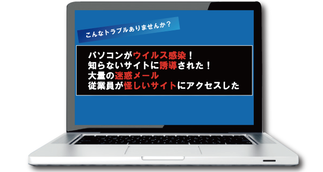 1人でも怠っていると社内のネットワークに感染が広がり、セキュリティソフトを入れていても被害にあっているのが現状です。